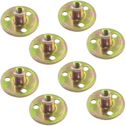 CEEYSEE Pack of 10 Flange Nuts M6 x 37 x 2.5 mm Brad Hole T-Nut Flange with Round Base Internal Thread Screw-in Nut 3-Hole T-Nut for Strengthening and Connection of Holzbe (M6/FLZ-LM)