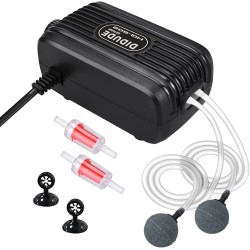 DIDUDE Aquarium Air Pump, Extremely Quiet Low 20-40 dB Adjustable Aquarium Air Pump, Quarium Oxygen Pump Double Outputs Air Valve Aquarium Air with 2 Check Valves for Aquariums from 3.8 - 300 L