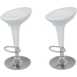 DP Grifería 2 x 1000 – Pack of 2 Bar Stools with Chrome Base and Seat in White (PVC)