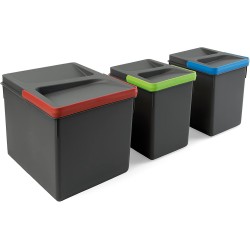 Emuca - Recycle Container for Kitchen Drawer, Height 216, 1x12L + 2x6L, Anthracite Grey Plastic, Plastic