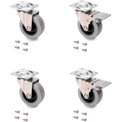 Emuca Set of 4 Swivel Castors for Furniture with Mounting Plate and Ball Bearings, grey, 2036221