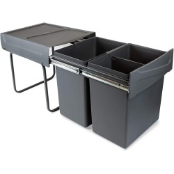 Emuca Kitchen Waste Bin with Bottom Fixing, 2 Pull-Out 20 L Recycle Bins, Total Capacity 40L (2 x 20L), Steel and Plastic, Charcoal Grey