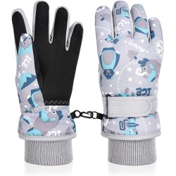 flintronic Children's Ski Gloves, Winter Ski Gloves for Years, Boys, Girls, Waterproof and Windproof Fleece Gloves with Adjustable Cuffs, for Snowboarding, Climbing, Skiing, Cycling
