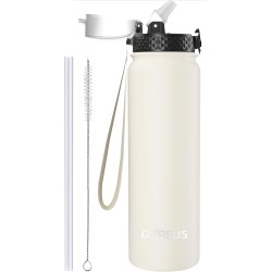 GOPPUS Thermos Flask with Straw Double Layer Stainless Steel Drinking Bottle 1 Litre Insulated Flask Leak-Proof Sports Water Bottle Carbonated Water Bottle Drinking Bottles BPA-Free Water Bottle