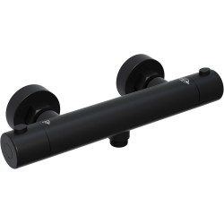 Görbach Thermostatic Mixer Tap with Thermostat for Rain Shower System, Shower Thermostatic Mixer Tap with 38 °C Safety Button, Shower Fitting, Matt Black, Round