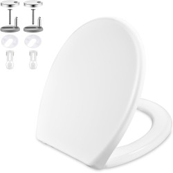 GRIFEMA G951 Тоалетна седалка - UF смола - Антибактериална - Автоматично спускане - Механизъм за плавно затваряне - Функция за бързо освобождаване - Лесна за почистване - D капак за тоалетна, бял