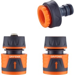 GRIFEMA Hose Connector Set, 1/2 Inch Garden Hose Connector, 1/2 Inch Water Stop Hose Connector, 1/2 Inch - 3/4 Inch Tap Connector, Can Stop Water Quickly, Orange
