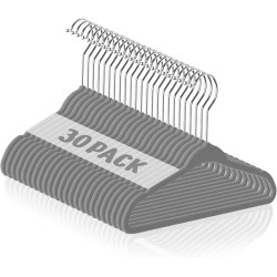 HOUSE DAY Set of 30 Children's Velvet Clothes Hangers, 28 cm, with Notched Design, Ultra Thin, Space-Saving Baby Clothes Hangers, 360 Degree Swivel Hook, Non-Slip, Grey