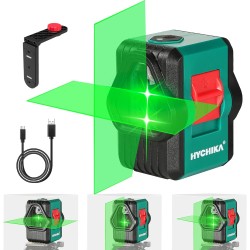 Hychika Cross Line Laser 30 m, self-levelling green line laser 360 ° degrees switchable horizontal/vertical/crossline with magnetic holder, IP54, USB charging and protective case