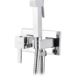 Ibergrif M22011 Flush-Mounted Square Toilet Bidet Hand Shower Set with Shower and Holder, Hose, Hot and Cold Water, Chrome, Silver