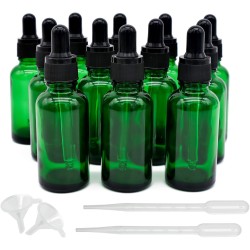 inheming Pack of 12 Glass Pipette Bottles, 30 ml, Green Dropper Bottle with Glass Pipette, Apothecary Bottle, Small Glass Bottle, Dropper Bottle, for Essences, Oils, Perfume Extracts