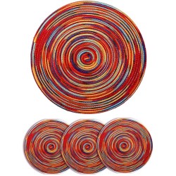 Alnicov Colorful Round Placemats 30cm Set of 4 Woven Rattan Heat Resistant Dining Table Holiday Christmas Kitchen Table Rainbow