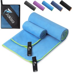 Jokisa Microfibre Towel Set (180 x 90 cm Bath Towel Large + 100 x 50 cm Sports Towel), Quick Drying and No Sand Beach Towel, Microfibre Towels for Fitness, Beach