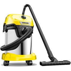 Kärcher WD 3 S V-17/4/20 Wet/Dry Vacuum Cleaner with Cartridge Filter, Fleece Filter Bag, 1000 W, 2 m and Hose Storage, Blow Function, Floor and Crevice Nozzle, Black, Yellow