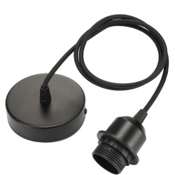 Linkind Lamp Suspension E27 with Screw Ring, 100 cm Textile Cable Height Adjustable, Lampshade Freely Selectable Pendant Light with E27 Socket, Lamp Holder Ideal for Ceiling Light Living Room, Black