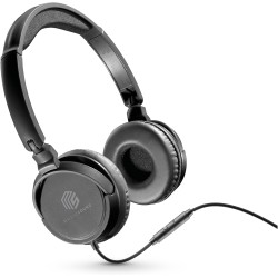 Music Sound Over Ear Basic Wired Headphones | On-Ear Headphones Foldable Headband with 1.2 m Anti-Tangle Cable and Built-in Microphone - 3.5 mm Jack Connection - Black