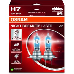 Osram Night Breaker Laser H7, +150% More Brightness, Halogen Headlight Bulb, 64210NL-2HB, 12 V Car, Hanging Box (2 Lamps)
