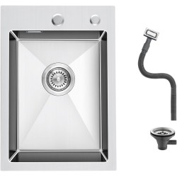 OUGOO 304 Stainless Steel Sink, 35 x 50 cm, Classic Built-in Sink with Holes, Rectangular Kitchen Sink with Strainer Basket Valve and Overflow, 1 Bowl Kitchen Sink for 35 cm Base Cabinet, Brushed