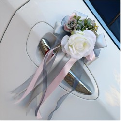 Pmnzdy 4pcs Car Bows Wedding Artificial Flower Car Decoration Rear View Mirror Door Handle Flower Bow Decoration Simulation Flower Wedding Car Decoration Car Bows for Wedding Party Grey