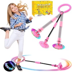 Q-WOOFF Children's Flashing Jump Ring, Sports Jumping Ball, Foldable Flash Jumping Ball, Suitable for Skill Games for Children or Adults, Exercise (Pink) (L)