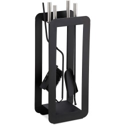 Relaxdays Modern 5-Piece Fireplace Tool Set with Ash Shovel, Broom, Poker, Tongs & Holder, Modern Black