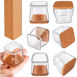 RUSIDO Pack of 20 square chair leg caps (for side length: 26-40 mm), clear chair leg protectors, chair gliders, silicone protective caps for chair legs, felt glides for wooden floors, floor from