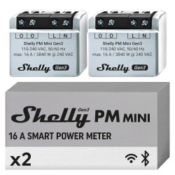 Shelly PM Mini Gen 3, Intelligent WiFi and Bluetooth Power Meter 1 Channel 16 A, Home Automation, Compatible with Alexa and Google Home, iOS Android App, No Hub Required (Pack of 2)