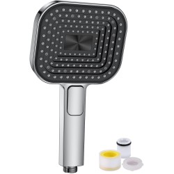 Shower Head, Water-Saving, Shower Head Large 135 mm, Hand Shower with Anti-Limescale Function, Food-Grade Silicone, 43% Water Saving, AirMix Shower Head with 3 Jet Types, Chrome (Without Hose)