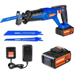 SORAKO Reciprocating Saw, 18 V Battery Reciprocating Saw with 4.0 Ah Batteries, Variable Speed from 0-3000 SPM, Stroke Length 20 mm, 2 Saw Blades, Quick Charger, Quick Release Chuck, Cutting for Wood
