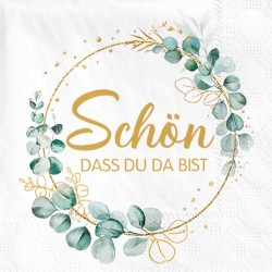 Sprinlot Pack of 40 Serviettes Schön Dass Du Da Bist, Serviettes Wedding Birthday Eucalyptus, Napkins Sage Green, Napkins Eucalyptus Green, Birthday Napkins Christening Communion Table Decoration