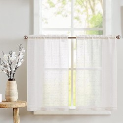 TOPICK Half-Curtains, Transparent, Bistro Curtains with Cross Pattern, Sheer Curtains, Short Gates, Gauze Window Curtains for Kitchen, Living Room, Country House Style, Set of 2, 60 cm, Ivory White