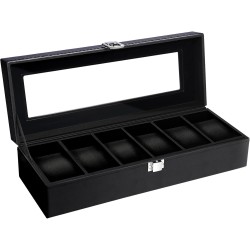 Uten Watch Box for 6 Watches, Men's Watch Box with Glass Lid, Black Lining, Removable Padding, Metal Buckle, Jewellery Box for Men and Women Watches