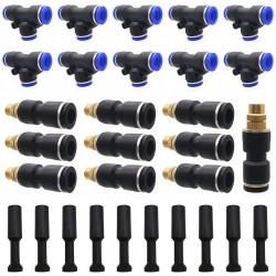 Water Nozzles Mist, Dujelixa Brass Straight Pass Irrigation Nozzle, 10 Pieces with 10 Pieces T Plug + 10 Pieces Choke Choke Irrigation Plugs for Watering, Greenhouse, Lawn