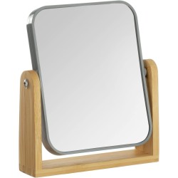 YEAKE Double Sided Makeup Mirror with 3x Magnification and Bamboo Stand, Small Table Mirror with 360° Rotation, Portable Cosmetic Mirror, Good for Tables, Travel, Grey