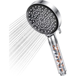 YEAUPE Water-Saving Shower Head, 7.5 L/Min, Rain Shower Head with Filter, Pressure Increasing, with 6 Jet Types, Economical Shower Head (without Hose), Chrome