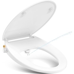 YEAUPE PRO Toilet Seat with Bidet, Toilet Seats with Soft-Close Mechanism, Non-Electric, with Self-Cleaning Double Nozzles, Separate Back and Female Cleaning (White D), 44 x 37 x 8.3 cm