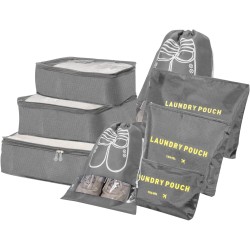 Комплект 8-в-1 за организиране на куфари за пътуване, чанти за дрехи, кубчета за опаковане, органайзери за багаж за дрехи, обувки, бельо, козметика, сив