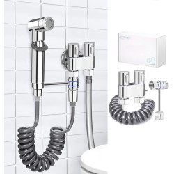 Bidet Hand Shower Set, High-Quality Refined Copper Bidet Shower with G1/2 Inch Valve and a G3/8 Inch, Chrome Handle, Bidet Fittings for Shower, Bathroom, Hygiene, Toilet Paper, Nappy Cleaning (1#)
