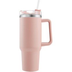 40 oz Double-Walled Stainless Steel Vacuum Insulated Mug 1200 ml Tumbler Drinking Cup with Handle Straw Insulated Coffee Mug Car Mug Travel Mug Thermal Mug for Cold Hot Drinks Pink