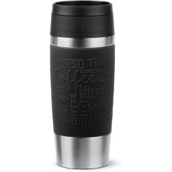 Emsa N20202 Travel Mug Classic Insulated Mug 0.36 Litres Comfort Screw Cap Stainless Steel 4 Hours Hot and 8 Hours Cold 100% Leak-Proof Dishwasher Safe 360° Drinking Opening Black