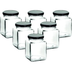gouveo Set of 6 preserving jars, 730 ml, square with screw lid, black, large storage jars with screw cap, empty jam jars, preserving jars, storage jars
