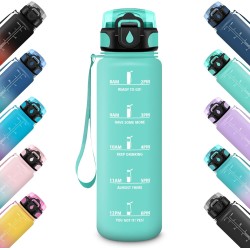 Drinking Bottle 500 ml/1 L, Water Bottle with Time Marking and Filter, Leak-Proof Water Bottle, Carbonated Drinks, Suitable for Bicycle, School, Girls, Sports
