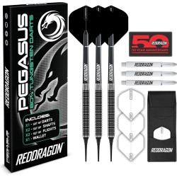RED DRAGON Pegasus Tungsten Soft Tip Darts Set (Dart Arrows) - 18 g or 20 g - Black Stems, Black Flights