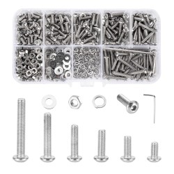 500 Piece M3 Screws and Nuts Set, Hexagonal Screws Stainless Steel M3 x 6 M3 x 8 M3 x 10 M3 x 12 M3 x 16 M3 x 20 with Hex Key