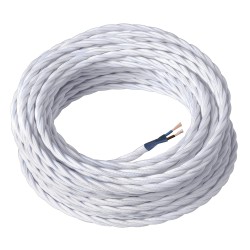Amarcords - Textile cable for lamps, white, braided, silk, 10 m, with 2 conductors 2 x 0.75 mm - fabric cable covered with coloured vintage fabric for chandeliers, wall lamps and lampshades