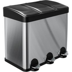 Amig - Triple Pedal Bin 45 Litre Mod. RECIK3-3 Removable 15 Litre Compartments - Kitchen Recycling Bin - Stainless Steel - 60 x 37 x 49 cm - Silver